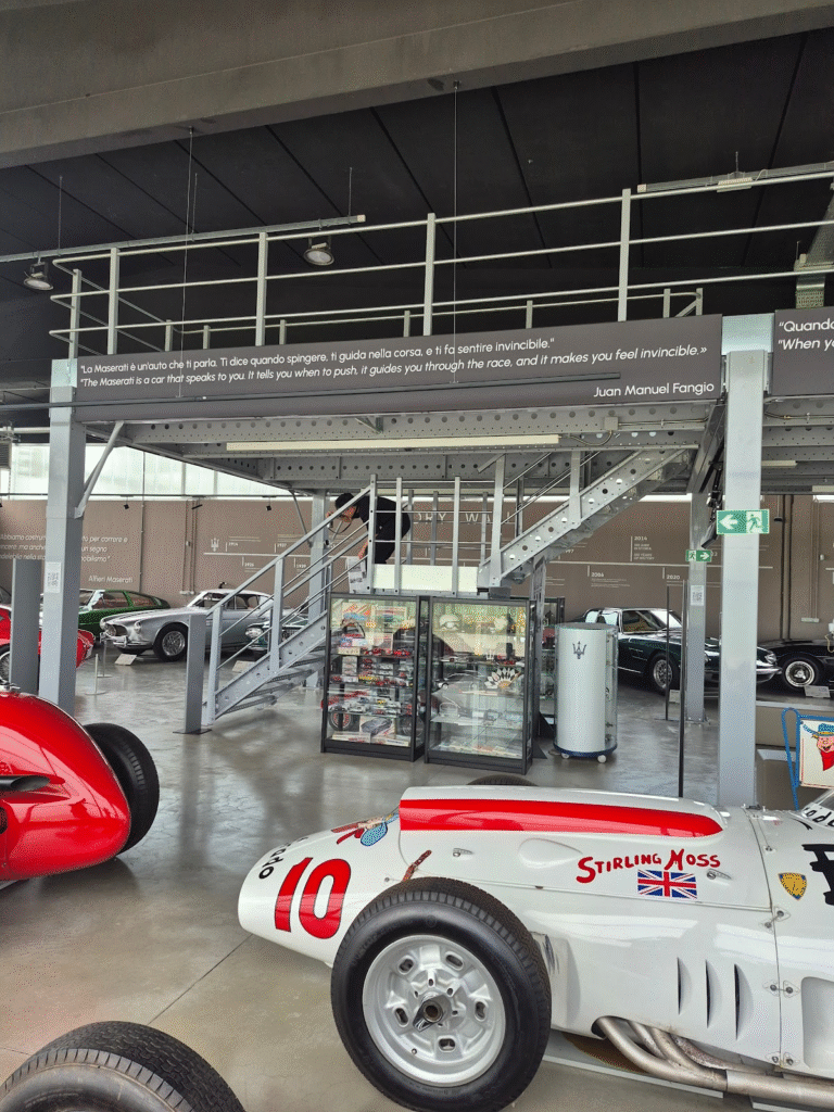 La sede de Modena es un espacio más pequeño. Una gran sala abierta con varias máquinas expuestas. Los autos son hermosos y más modernos pero aún así… nos hubiera gustado que estén presentados de otra manera, especialmente porque se trata de los museos más caros de todos los que visitamos.