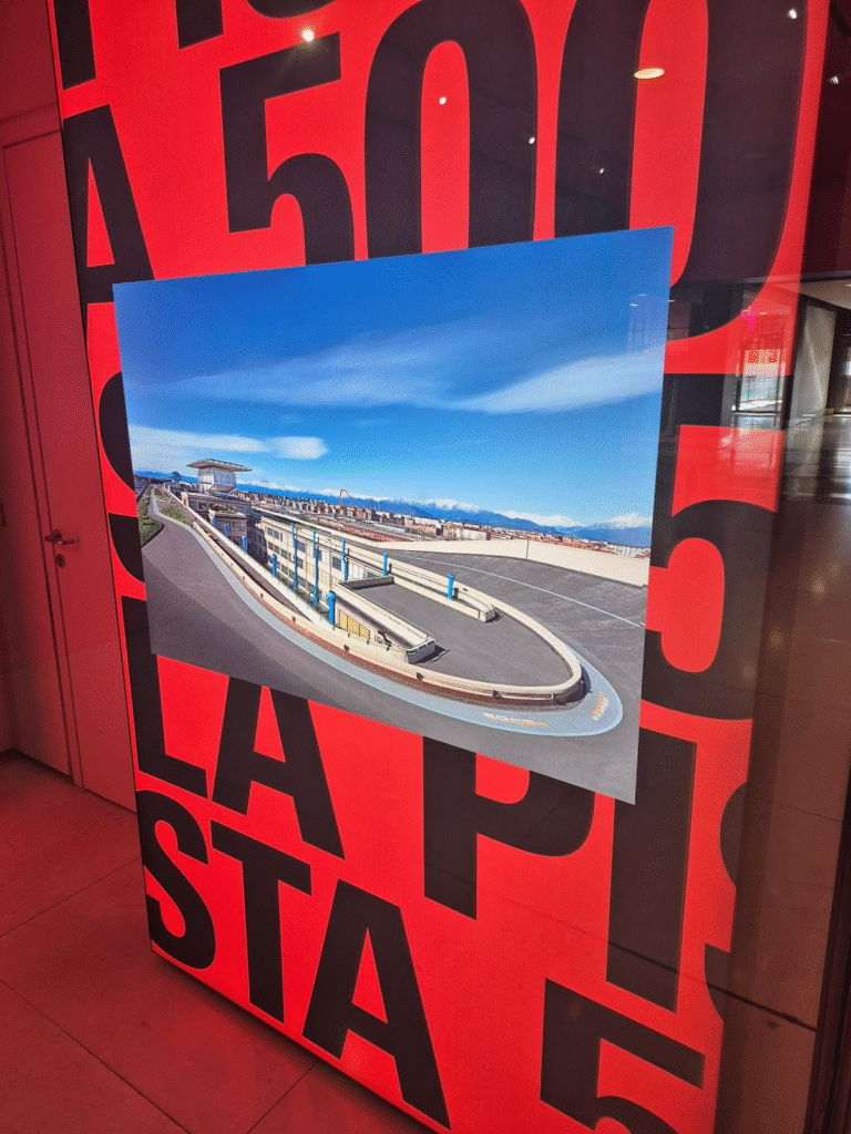 Luego tener la oportunidad de ver y caminar sobre lo que era la pista de pruebas de esa fábrica es emocionante y un poco escalofriante. La pista se encuentra en la terraza del edificio y se trata de un óvalo peraltado que hoy hace las veces de espacio de exposiciones y eventos artísticos.
